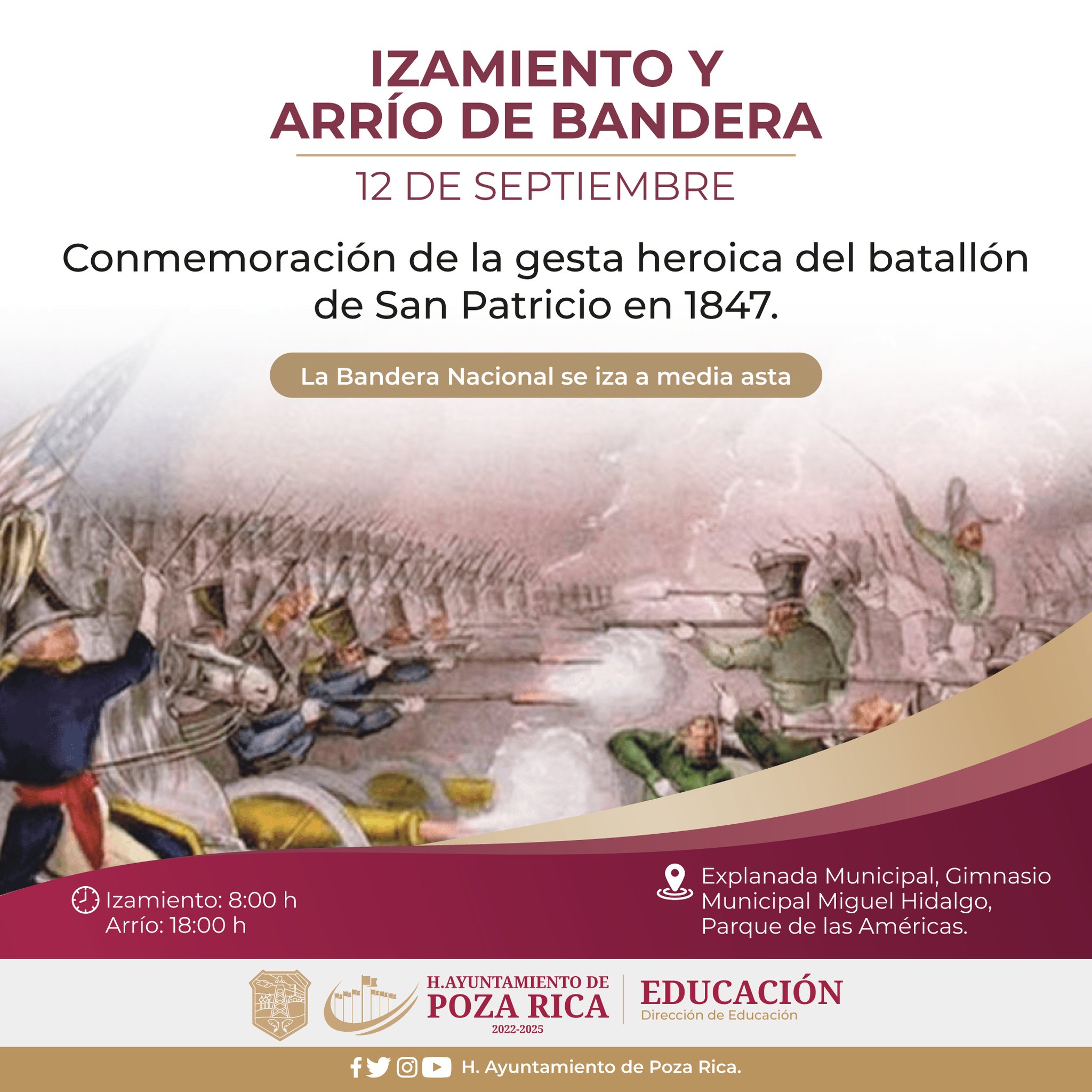 Hoy conmemoramos el 175° aniversario de la Gesta Heroica del Batallón de San Patricio, un capítulo crucial en la historia de México que destaca la valentía y el compromiso de un grupo de hombres de diferentes nacionalidades que se unieron en defensa de la soberanía mexicana durante la Guerra México-Estados Unidos de 1846-1848.