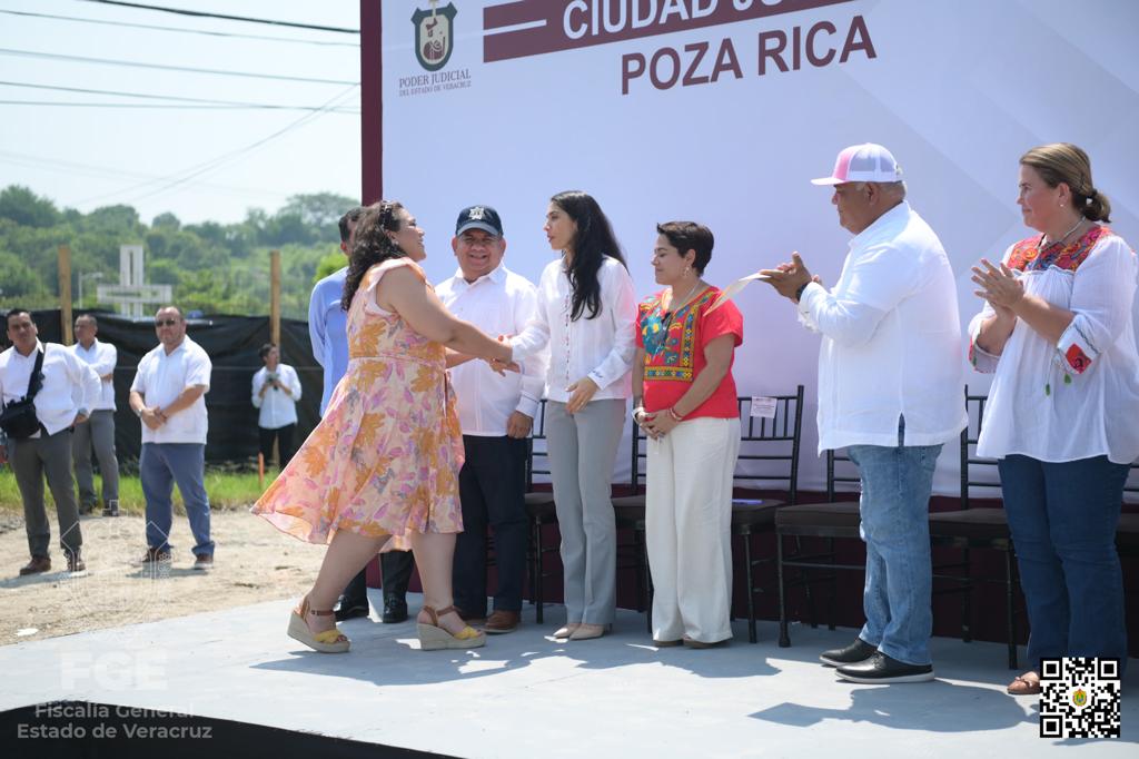 Poza Rica, Ver., 30 de agoto 2023.- La Fiscal General del Estado, Verónica Hernández Giadáns, asistió como invitada al banderazo de inicio de obra de la Ciudad Judicial en Poza Rica, con la presencia del Secretario de Gobierno, Eric Cisneros Burgos y la Magistrada Presidente del Tribunal Superior de Justicia y del Consejo de la Judicatura del Estado, Lisbeth Aurelia Jiménez Aguirre.