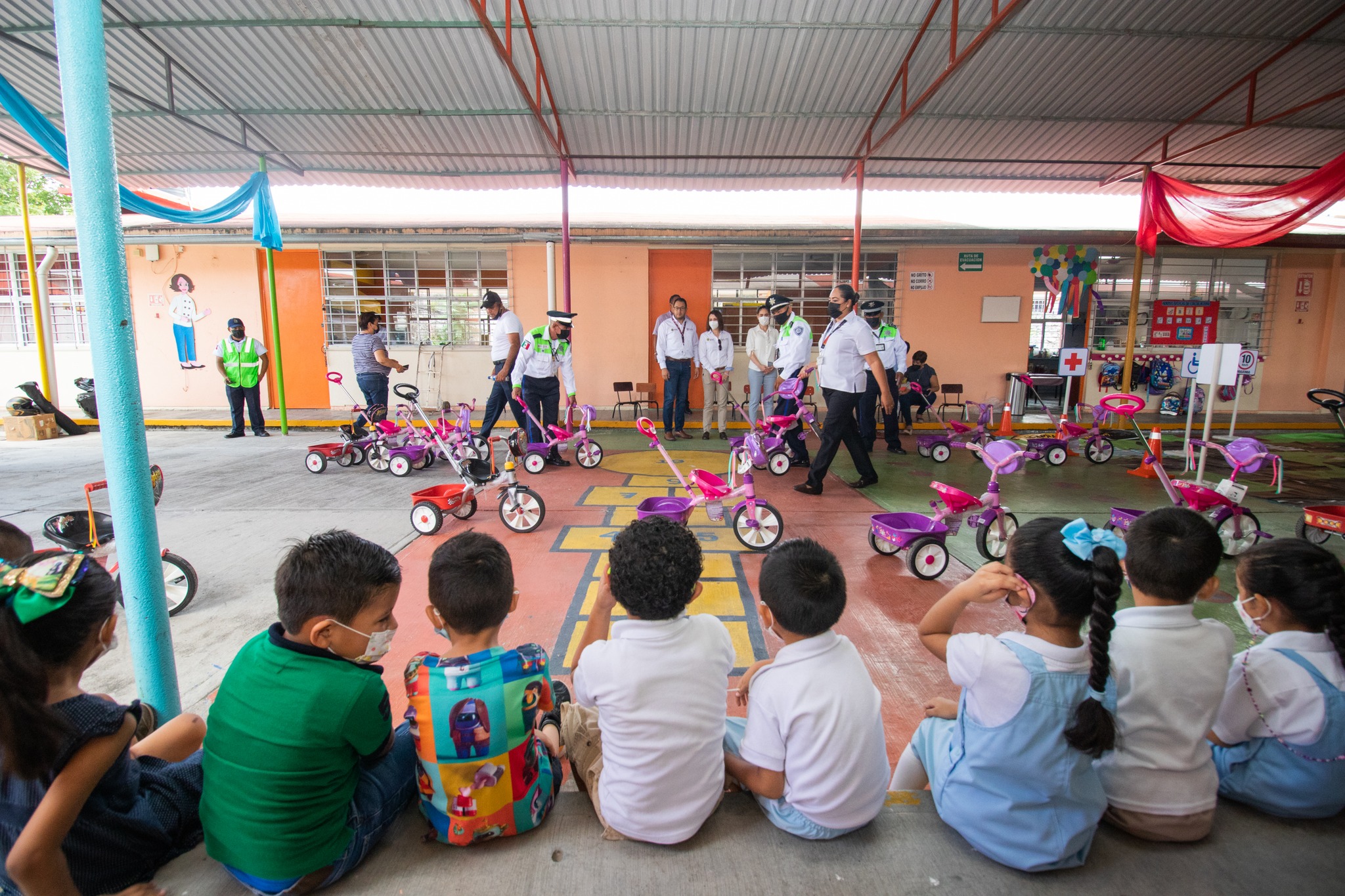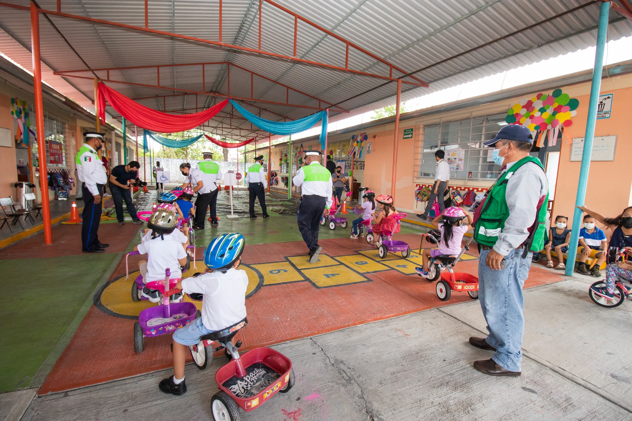 El H. Ayuntamiento de Poza Rica, a través de la Dirección de Tránsito y Vialidad, la Regiduría VII y XII, así como de la Secretaría Técnica del Consejo Estatal de Prevención de Accidentes, la Mtra. Yaneth Ladrón de Guevara Capistran, impartieron una serie de actividades en el Jardín de Niños «León Felipe» de la Colonia Ricardo Flores Magón, con el objetivo de generar conciencia vial desde temprana edad para la prevención de accidentes y el manejo responsable.