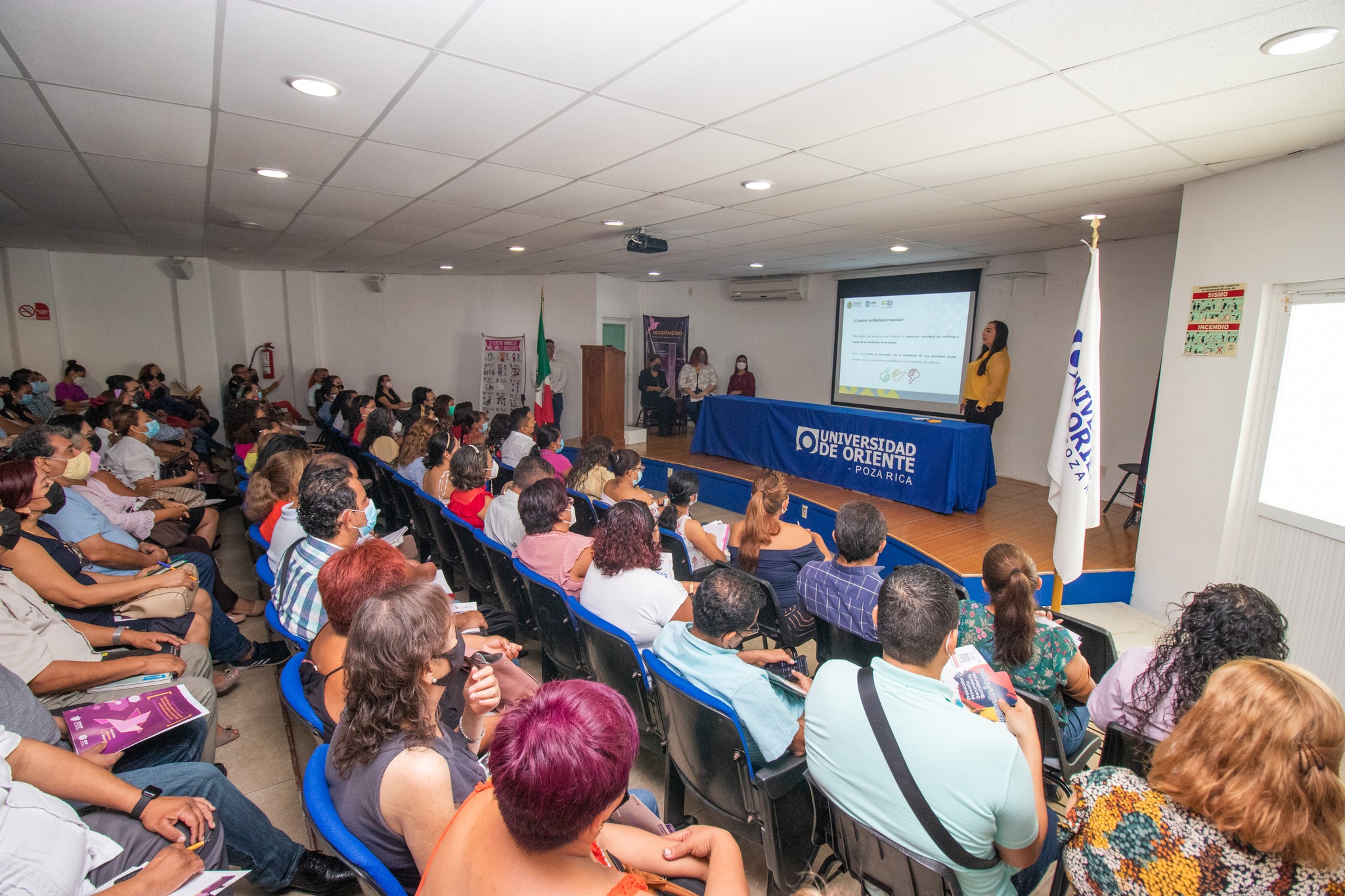 En cumplimiento con el compromiso de velar por la protección de los derechos humanos de las y los jóvenes del municipio, el Ayuntamiento de Poza Rica, a través del Sistema Municipal de Protección Integral de Niñas, Niños y Adolescentes (SIPINNA) y la Dirección de Educación, en conjunto con la Coordinación de Delegaciones Regionales de la Secretaría de Educación de Veracruz, organizaron una capacitación para educadores de planteles públicos y privados del municipio sobre los Protocolos para la Identificación, Prevención e Intervención del Acoso Escolar, el Maltrato Infantil y Actos de Connotación Sexual, donde se explicaron de manera detallada los procedimientos preventivos, de mediación y de intervención inmediata que se deben tomar en cualquier tipo de situación que vulnere la integridad física, mental o emocional de los estudiantes, para erradicar el acoso escolar, generando un ambiente de seguridad y orden.