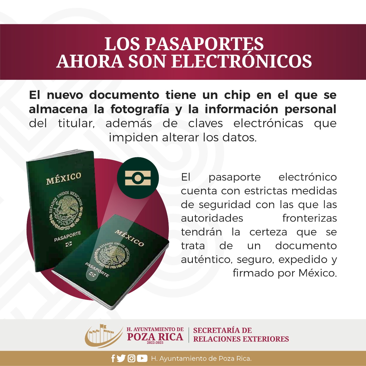 Los pasaportes ahora son electrónicos Publicado por PozaYorker | Abr 18, 2022 | Ciudad | 0 | Los pasaportes ahora son electrónicos por PozaYorker | Abr 18, 2022 | Ciudad Para más información sobre los trámites y servicios que brinda la Oficina Municipal de Enlace Poza Rica con la SRE, llama al 782 82 634 00 ext. 258. Comentarios de Facebook