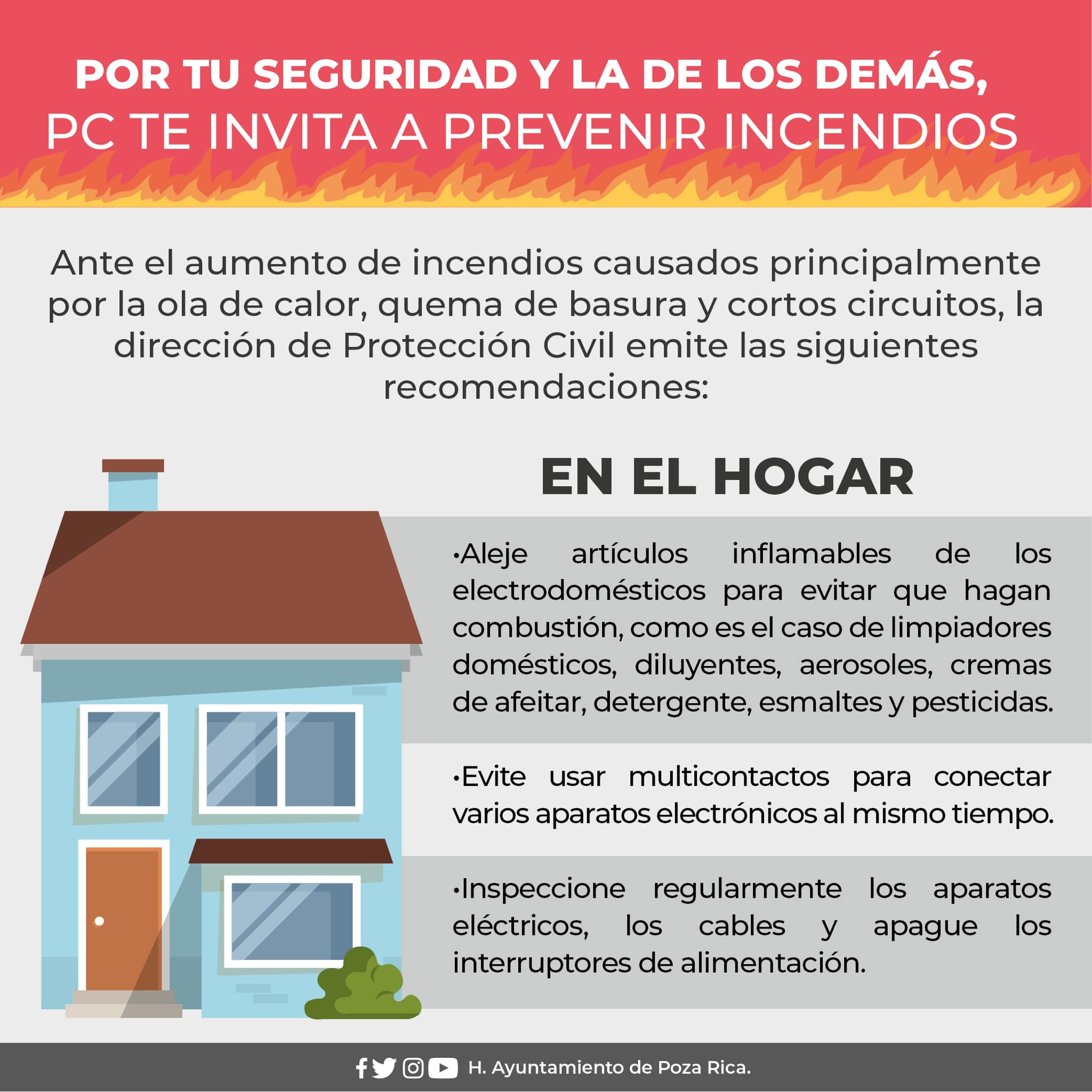 Recomendaciones para prevenir incendios Publicado por PozaYorker | Abr 8, 2022 | Ciudad | 0 | Recomendaciones para prevenir incendios por PozaYorker | Abr 8, 2022 | Ciudad En temporada de incendios debemos atender a las recomendaciones de Protección Civil. Comentarios de Facebook