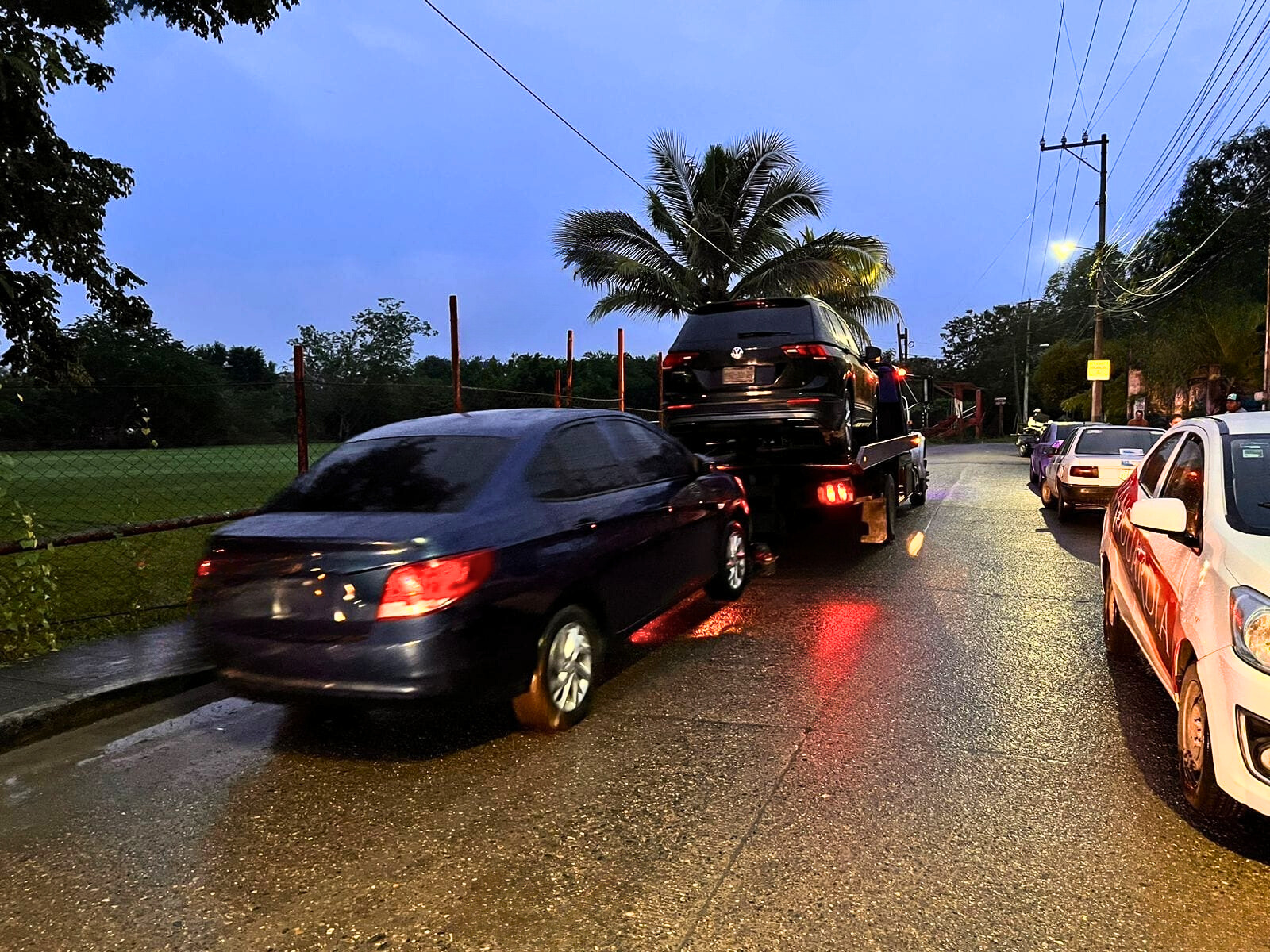 Las imágenes capturadas muestran cómo los vehículos fueron retirados del lugar mediante el uso de grúas, posiblemente para trasladarlos al corralón y ponerlos a disposición del fiscal en turno.