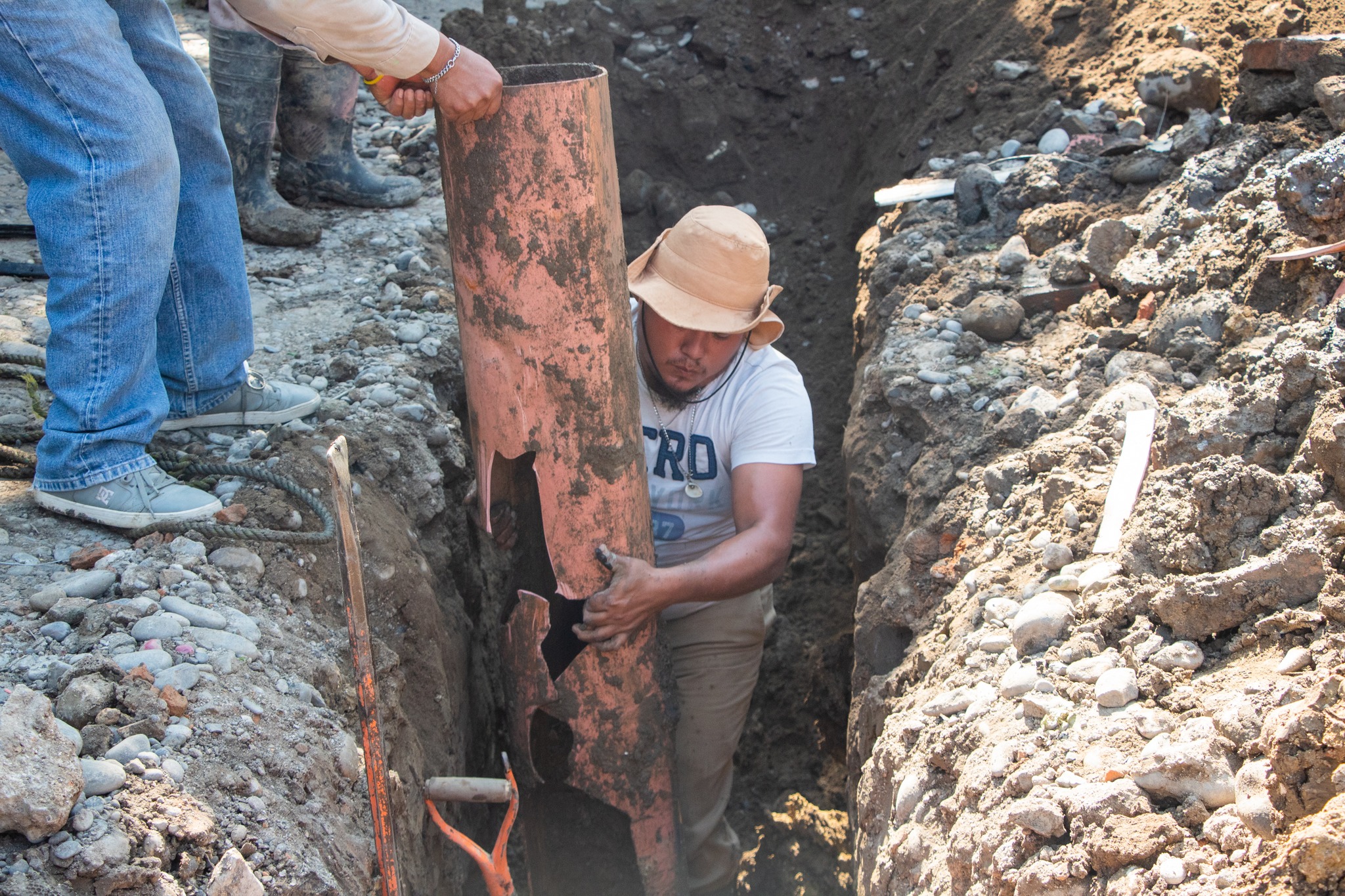 Personal del Ayuntamiento de Poza Rica, perteneciente a la Dirección de Servicios Públicos, introdujo 24 metros de tubería nueva de PVC reforzado, en la calle Heroica Veracruz.