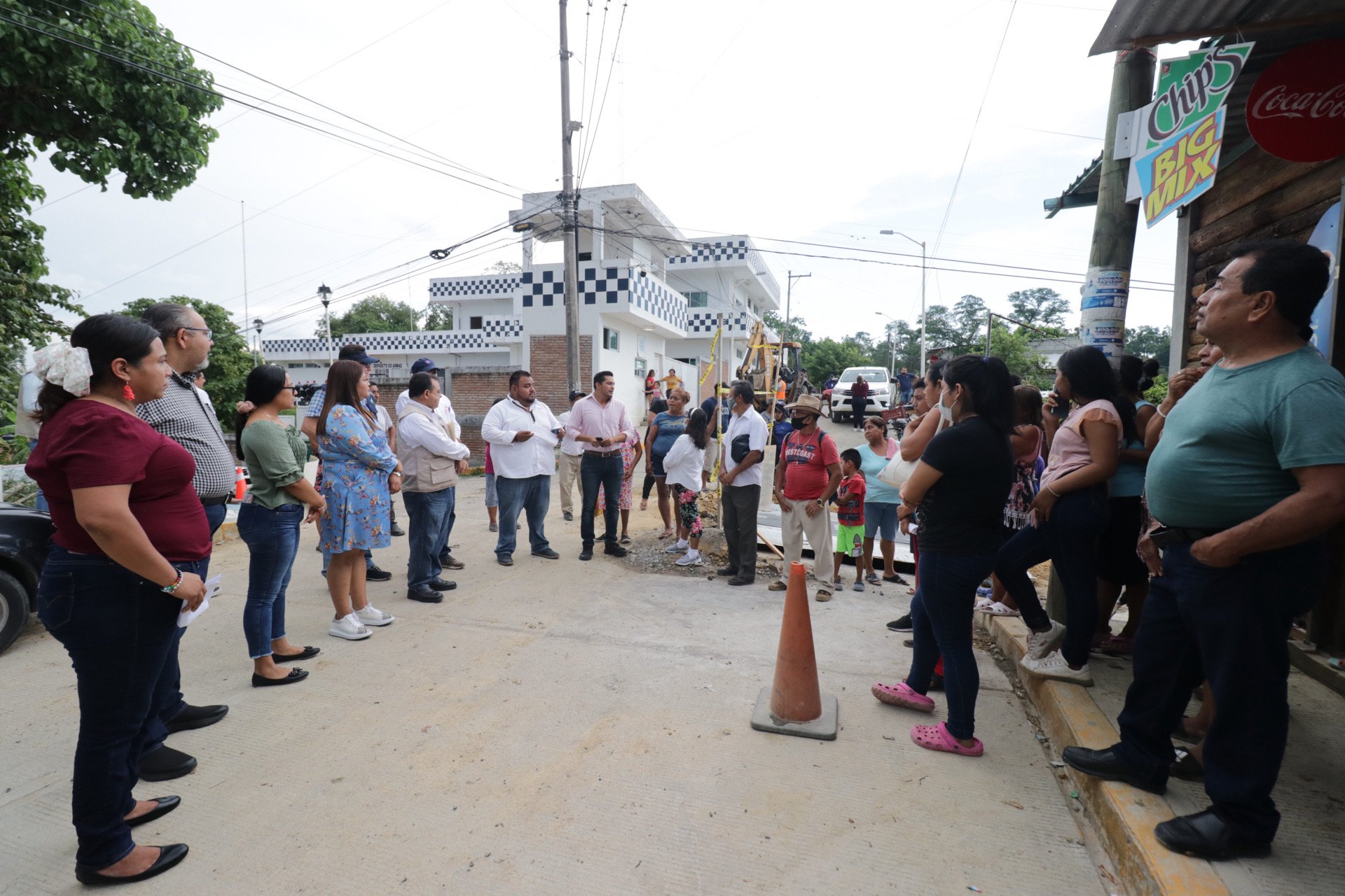 Autoridades municipales recorrieron ayer la colonia Sector Popular para supervisar el avance de los trabajos de pavimentación con concreto hidráulico, instalación de alumbrado público, construcción de tomas domiciliarias y rehabilitación de drenaje.
